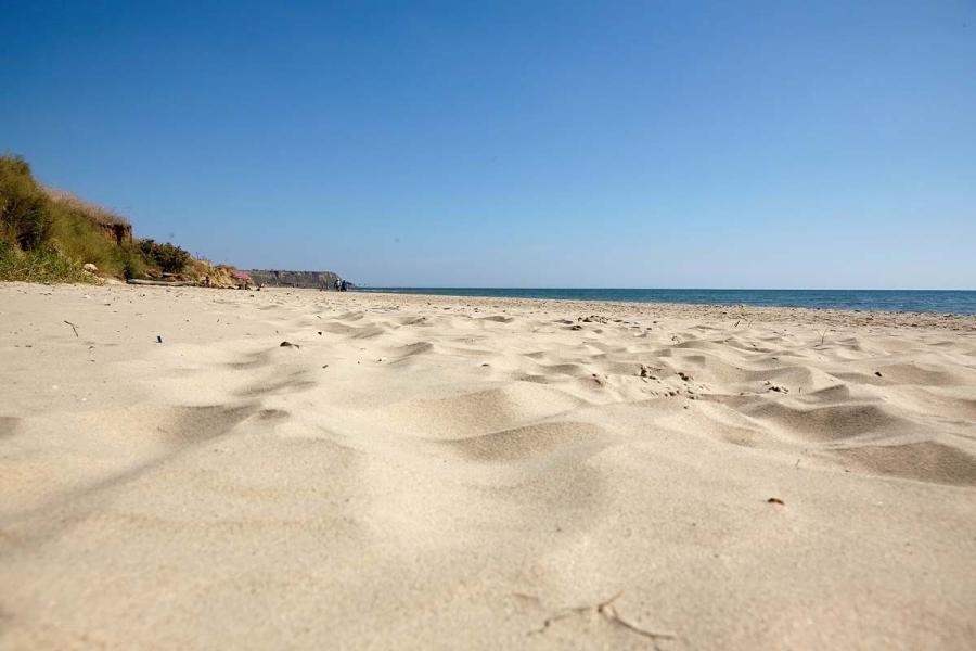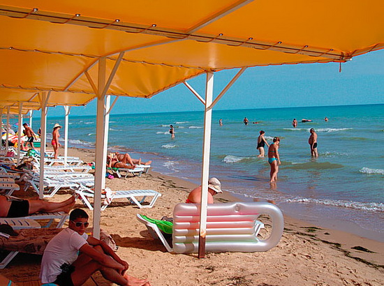 Расположен в 50 метрах от гостиницы. Белый песок, приятный, спокойный заход в море по песчаному дну. Теневые навесы, шезлонги, кабинки для переодевания, уборка пляжа... Дельфины частые гости...